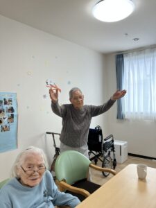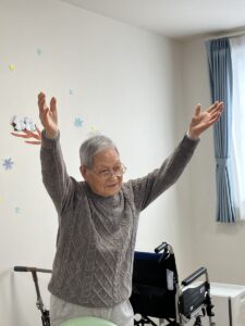 本日は機能訓練の一環として、シルバーカーを使用した廊下歩行やテレビ体操、お散歩を行いました😊