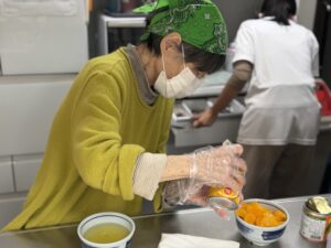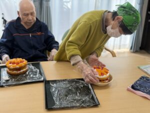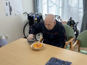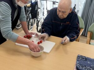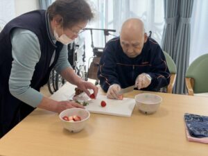 一方で、別の入居者様にはフルーツのカッティングを担当していただきました。
