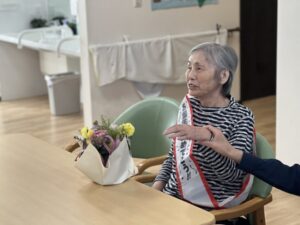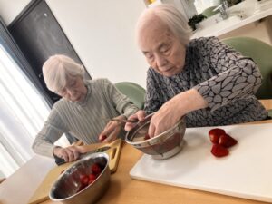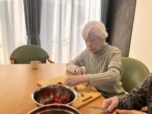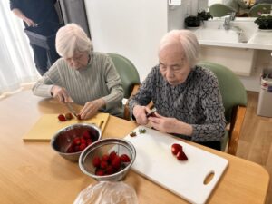 フロアにて、お誕生日のお祝いとして皆様と一緒に手作りケーキ作りを行いました🍰