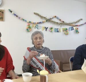 バースデーソングを皆様で歌い、完成したケーキを召し上がられ、楽しいひとときを過ごしていただきました😊