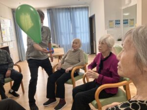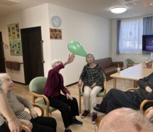 フロアにて、皆様で円になり風船バレーを行いました🎈