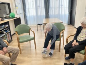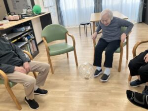 フロアにて、ボール回しのレクリエーションを行いました❣️