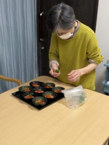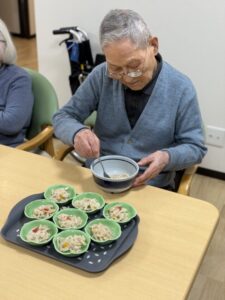 ご入居者様にもお手伝いいただきながら、皆様で協力して盛り付けを行いました✨