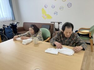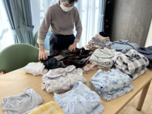 取り込んだ洗濯物も、皆様で協力しながらきれいにたたんでくださっています。