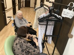 また、天気の良い日には布団干しや、フロアーにて洗濯干しも行っていただき、「気持ちいいね」と笑顔も見られました☀️