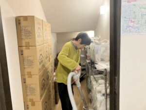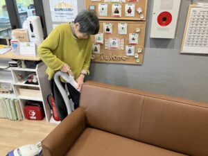玄関や倉庫内では、掃除機掛けを進んで行ってくださる入居者様の姿が見られました。