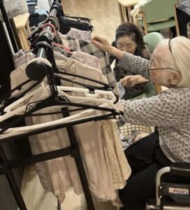 また、座りながらでも洗濯物を干してくださる入居者様もいらっしゃいます。