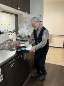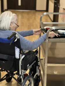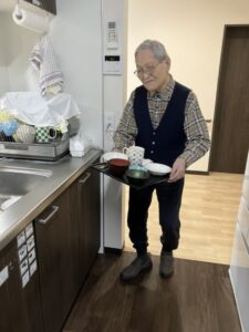 また、車椅子をご利用の方でも、腕の動きがしっかりされている方は多く、無理のない範囲で配膳や下膳に参加していただいています😊