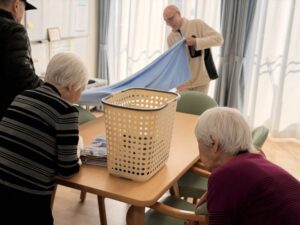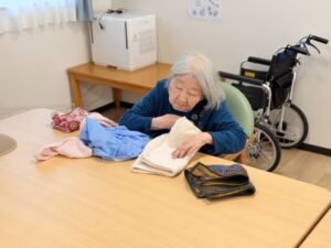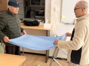 シーツなどの大きなものは「一緒にやろう!」と協力しながら丁寧に仕上げてくださいました👏