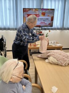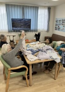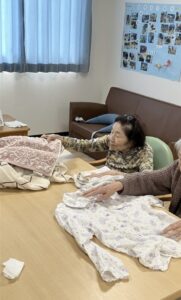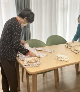 フロアにて、皆さまと一緒に洗濯物たたみを行いました😊