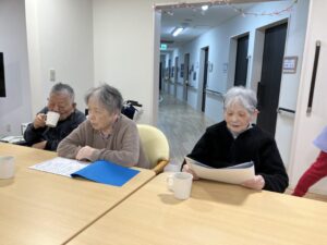 歌詞カードを見ながら、みんなで大合唱!