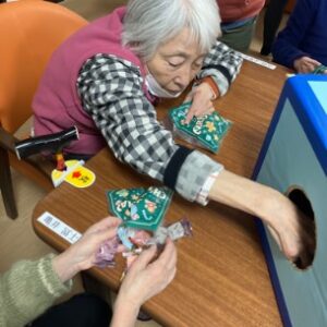 また、お菓子のつかみ取りでは手いっぱいにつかまれるかたもいれば一つだけつかまれる方もみえ、穏やかな笑いに包まれました