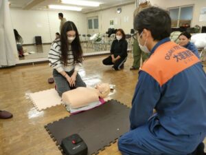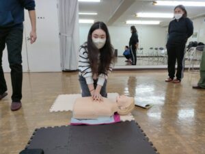 心肺蘇生法やAEDの使い方など、緊急時に必要な対応について学びました