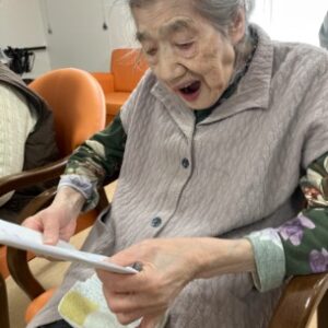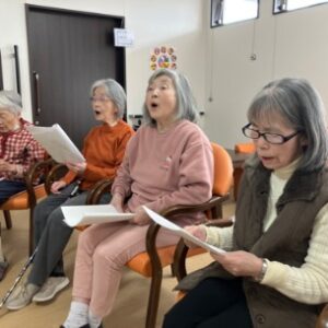 ひな祭りソングをみんなで合唱♬ 「若い頃を思い出すねぇ」と、身を乗り出しながら歌われる姿も❤ レクリエーションは大盛り上がりでした!