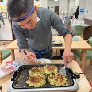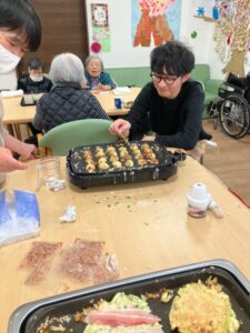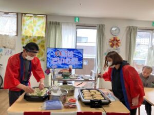ご利用者様にも焼いて頂いたり、食材を切って