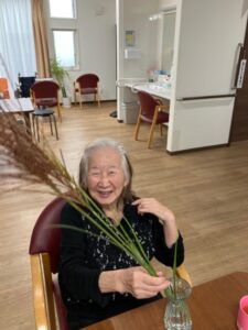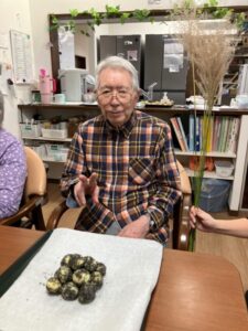 ススキを持ち寄り、皆さんでお団子を作ってお祝いをしました。