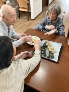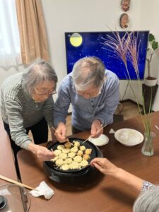 けやきフロア、カモミールフロアでそれぞれ違った月見団子を作ったのですが、