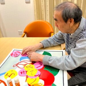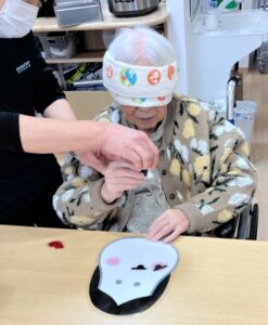 と、入居者様と職員でワイワイ相談しながら飾りつけが始まりました。