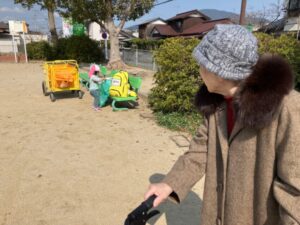 歩いていると、近くの園児たちと出会うこともあります。