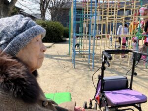散歩をして、子どもたちと交流して、