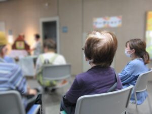 まず認知症についての紙芝居や回想療法などの催しがあり、入居者様も興味津々で聞いています。