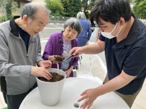 施設の庭の木々も少しずつ色づき始め、ご入居者様と一緒に季節の移り変わりを楽しんでいます。