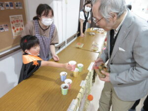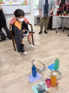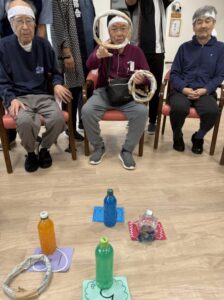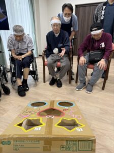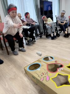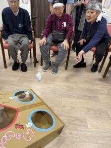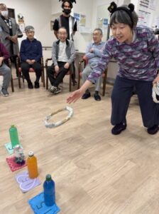 運動の秋ということもあり玉入れや輪投げなどのアクティビティを行い、