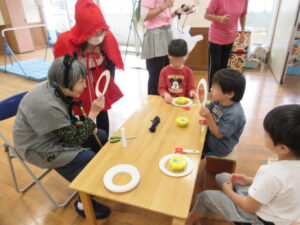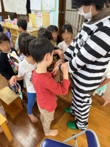 今回もふじみ野保育園にて制作(ハロウィンのクモの巣の飾り)を一緒に行うので遊びに行きました。