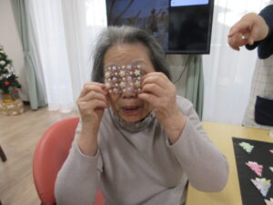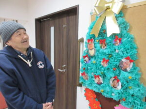 よく見るとご入居者様一人一人の顔写真が付いたオーナメントです👏