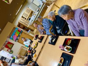 昼食時に皆さんで3名の誕生者様を