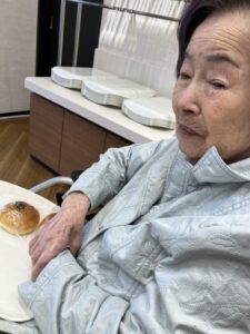 パンを食べてるところ、写真に撮って息子さんに送るよ~♪
