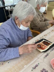 誤嚥予防としてノリではなく食パンにお好きなジャムなど塗っていただいて