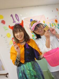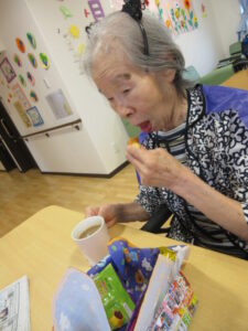 お菓子のつかみ取り。いっぱい取っちゃいますよ(^^♪