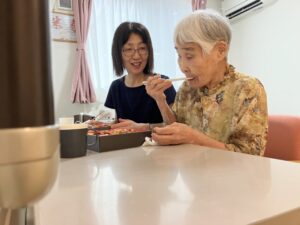 1階では居室でゆっくり食事をしてもらい家族団らんの時間を、家族様が来られなかった方は職員と一緒に食事を楽しい時間を過ごさせてもらいました( *´艸`)