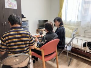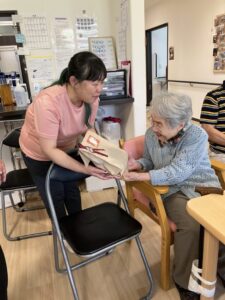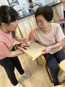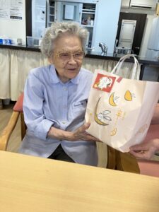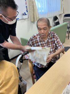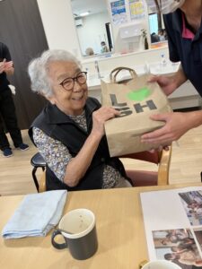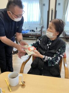 食事の後は心からのプレゼントを居室担当と茨木ケアマネから(^^♪