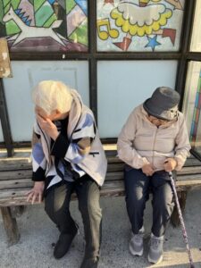 帰り道のバス停で一休み😽ちなみに後ろの絵もビーズで作られている絵なんです🙀
