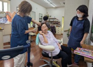 お店に到着すると、美容室の方が「久しぶりね、元気にしていましたか?」と笑顔で声をかけてくださり、ご本人も「会えて嬉しい!」と、とても喜ばれていました。久しぶりの再会に、会話も自然と弾みます。