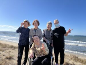 秋の空は、どこまでも高く、潮の香りがふわっとして、心がすーっつと軽くなります。風がとっても強くて、帽子が飛んでいきそうでした(^^)/