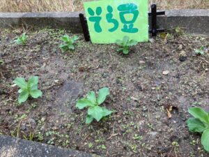 先日からホーム長のブログに掲載していたインゲン豆✖ではなく、そら豆とスナップエンドウ(笑)の成長を