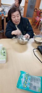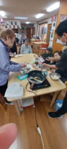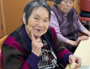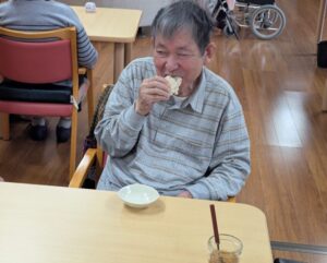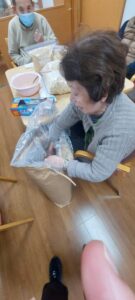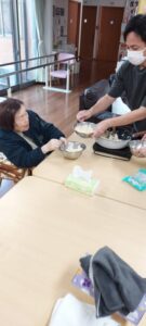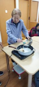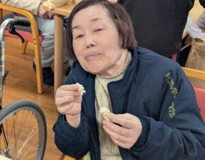 今日は入居者様と一緒に、みんなで楽しく「マシュマロおこし」作りをしました!