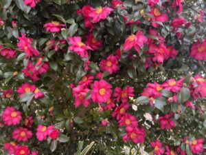 ジョイフルから外に出ると、隣に咲いていた椿がとてもきれいで・・