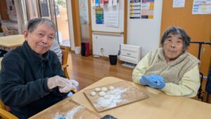 入居者様と参加されたご家族様も一緒に、いざお餅丸めスタート🙌