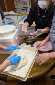 「こうやって丸めるのよ」と、人生の大先輩からのアドバイスも飛び交い、