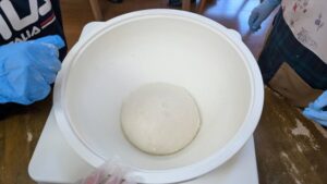 「おぉ〜!」「いい音がするね〜!」と、つきあがる様子を囲みながらワクワク😊
