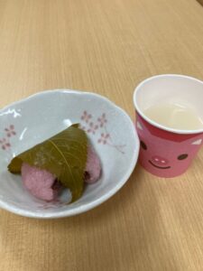 ゲームのあとは…甘酒と桜餅と梅昆布茶でおやつ😋✨