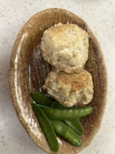 豆腐ハンバーグと付け合わせにスナップエンドウ(❁´◡`❁)