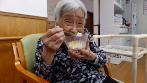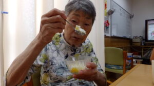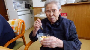 手作りのフルーツヨーグルトを入居者様に振る舞いました(*^^*)