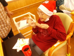 トナカイのカチューシャやサンタ帽子を身に着けた入居者様もいらっしゃり、会場は終始