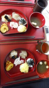 また、お昼にはお正月のおせち料理を、おやつには温かいぜんざいをご用意いたしました♫
