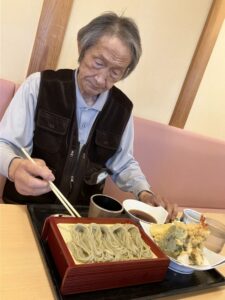 お蕎麦や天丼など、思い思いのメニューを楽しみながら、「やっぱりお店の味は格別だね」